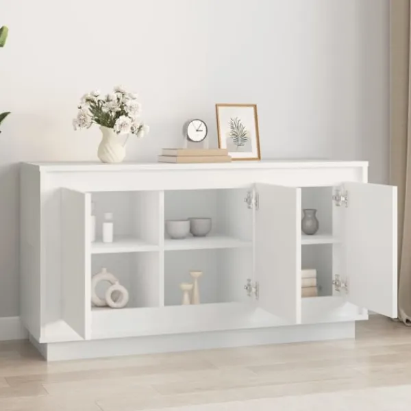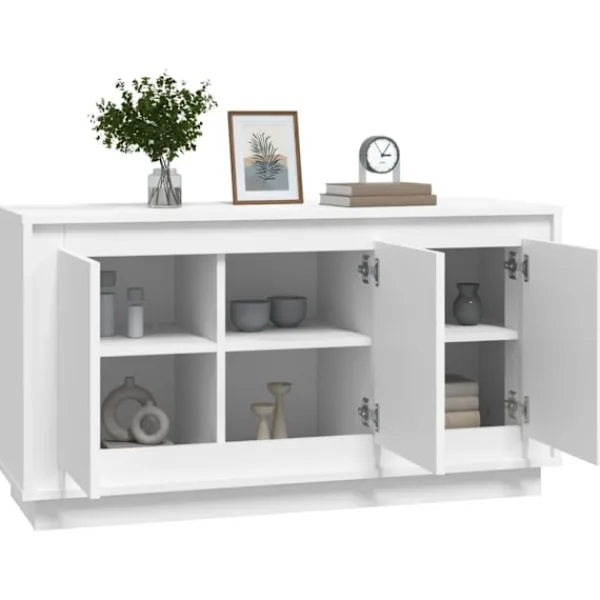 Denna klassiska skänk med ett tidlöst utseende kan bli ett perfekt tillägg i din heminredning. Hållbart material: Det konstruerade träet är av exceptionell kvalitet med slät yta och är också starkt, stabilt och fuktbeständigt. Skåpet är tillverkad av konstruerat trä och är lätt att rengöra med en fuktig trasa.Gott om förvaringsutrymme: Skåpet är utrustat med 6 utrymmen, vilket ger gott om förvaringsutrymme för att hålla dina olika dagliga saker välorganiserade och inom räckhåll.Visningsfunktion: Översidan av denna byrå är utmärkt för att placera dina dekorativa föremål, fotoalbum eller små växter på.Praktiska dörrar: Håll dina väsentligheter dammfria genom att bevara dem i detta förvaringsskåp. Bra att känna till:För att göra monteringen så enkel som möjligt, levereras varje produkt med en bruksanvisning. Varning:För att förhindra att den välter måste denna produkt användas tillsammans med det medföljande väggfästet.