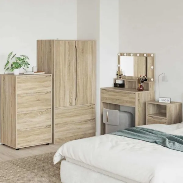 - Premium konstruerat trä: Skåpet är gjort av högkvalitativt konstruerat trä med en slät och hållbar yta som håller över tid. Det klarar av vardagligt slitage och blir ett bra val för förvaring.