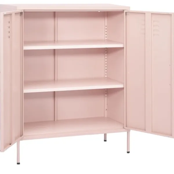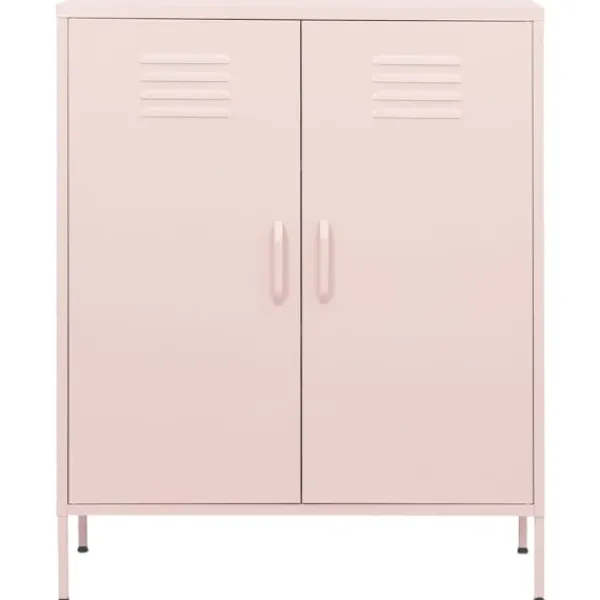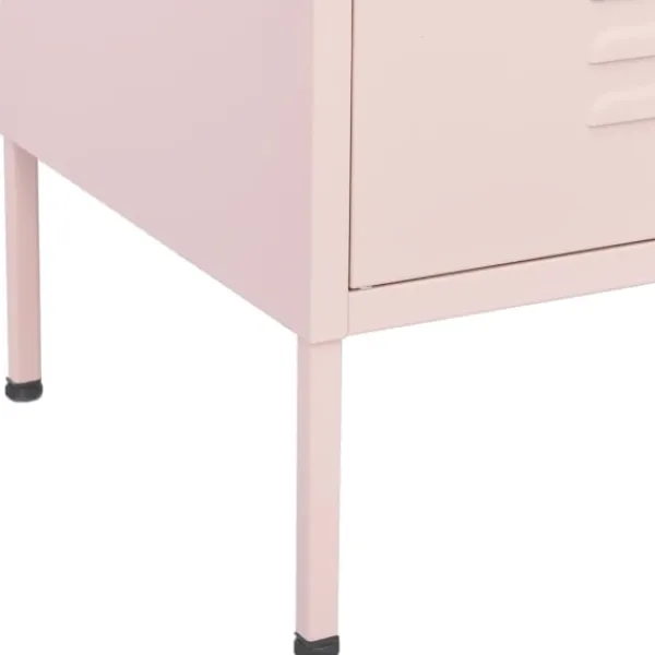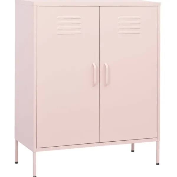 Detta förvaringsskåp med en praktisk design blir garanterat ett blickfång i ditt hem. Detta sidoskåp, med stålkonstruktion, är robust och hållbart. Det finns utjämnare på botten för att justera höjden efter dina behov. Skänken har 2 dörrar med justerbara hyllor inuti för att passa föremål i olika storlekar, såsom böcker, tidningar och andra personliga saker.