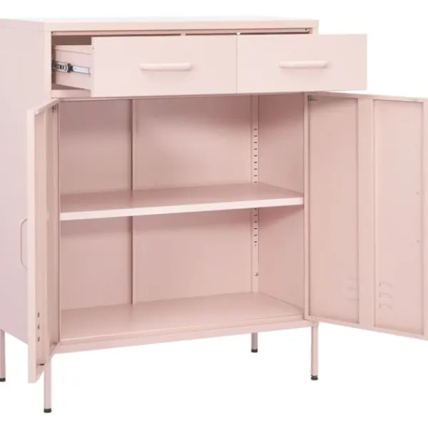 Detta skåp kommer hålla ditt hem rent och organiserat! Förvaringsskåpet är tillverkat av stål, vilket gör det stabilt och tåligt. Hyllorna har gott om förvaringsutrymme för att hålla dina DVD-skivor, multimedieapparater, böcker och små väsentliga föremål organiserade och inom räckhåll. Lådorna med 3 sektioner kullager ger smidig öppning och stängning och även om du lastar de tungt kan de dras ut helt. Dessutom är skåpet lätt att rengöra med en fuktig trasa.