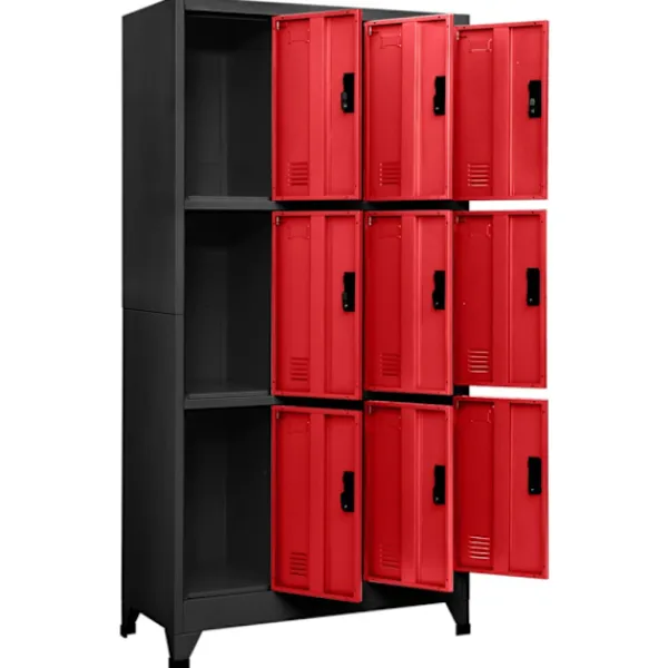 Detta förvaringsskåp är tillverkat i stål, vilket gör det hållbart och enkelt att rengöra. Varje fack är utrustat med en låsbar dörr som har luftventiler. Skåpet har gott om förvaringsutrymme för att hålla kläder och andra personliga tillhörigheter säkra. Dessutom har skåpet namnskyltshållare. Detta skåp är lämpligt för skolor och kontor när du behöver lagra olika saker.