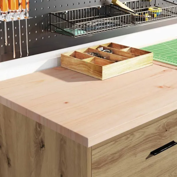 - Mångsidig arbetsyta: Bänkskivan i trä ger en stadig yta för olika uppgifter, t.ex. reparationer, montering eller gör-det-själv-projekt.
