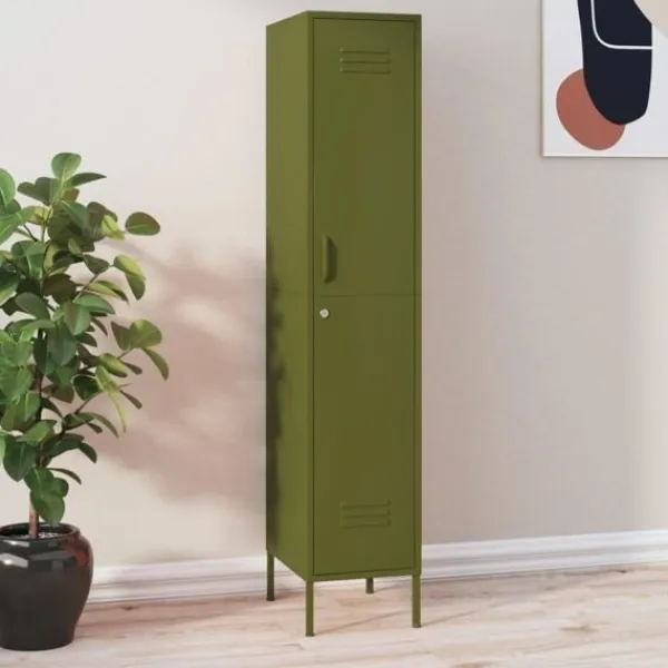Detta skåp har en modern design och passar bra i alla rum eller kontorsmiljöer. Förvaringsskåpet är tillverkat av stål, vilket gör det hållbart och lätt att rengöra. Det finns utjämnare på botten för att justera höjden enligt dina behov. Med 4 justerbara hyllor och lås, har stålskåpet gott om förvaringsutrymme för dina olika föremål som kläder, skor, väskor, böcker, filer, etc.