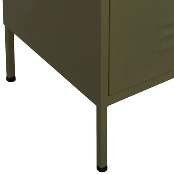 Detta förvaringsskåp med en praktisk design blir garanterat ett blickfång i ditt hem. Detta sidoskåp, med stålkonstruktion, är robust och hållbart. Det finns utjämnare på botten för att justera höjden efter dina behov. Skänken har 2 dörrar med justerbara hyllor inuti för att passa föremål i olika storlekar, såsom böcker, tidningar och andra personliga saker.