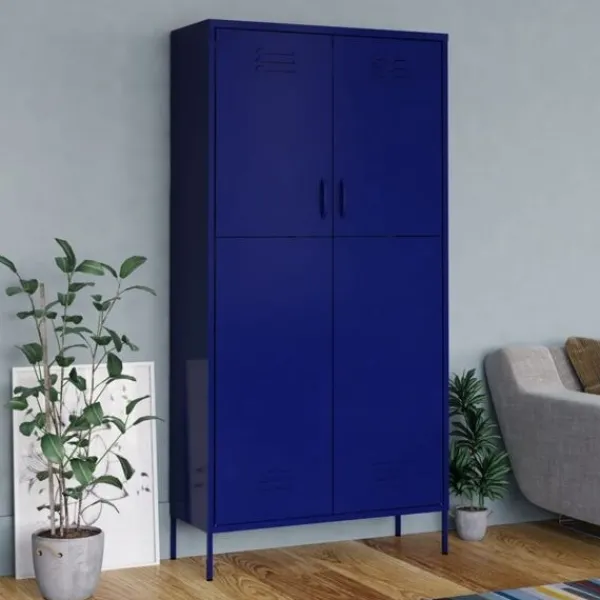 Håll din inredning välorganiserad och snygg med den här garderoben. Den är en perfekt förvaringslösning och utstrålar en chic känsla till ditt befintliga hem. Det här klädskåpet är tillverkat av stål, vilket gör det hållbart och lätt att rengöra. Detta klädskåp har 4 justerbara hyllor och ett stort fack med en upphängningsstång, med gott om förvaringsutrymme både för dina längre outfits och andra vikta kläder eller tillbehör, som tröjor, jeans, hattar, handväskor etc.