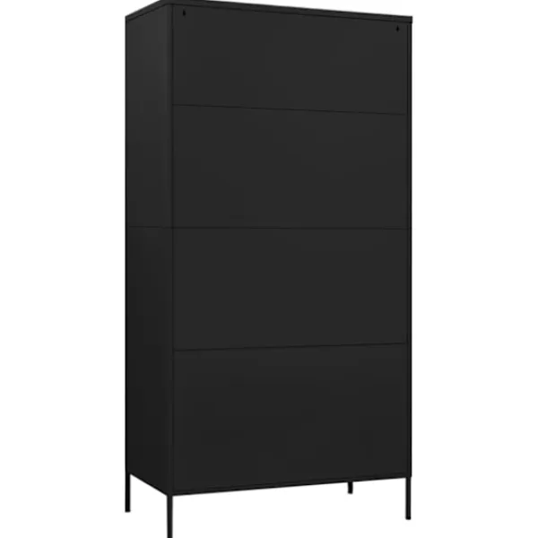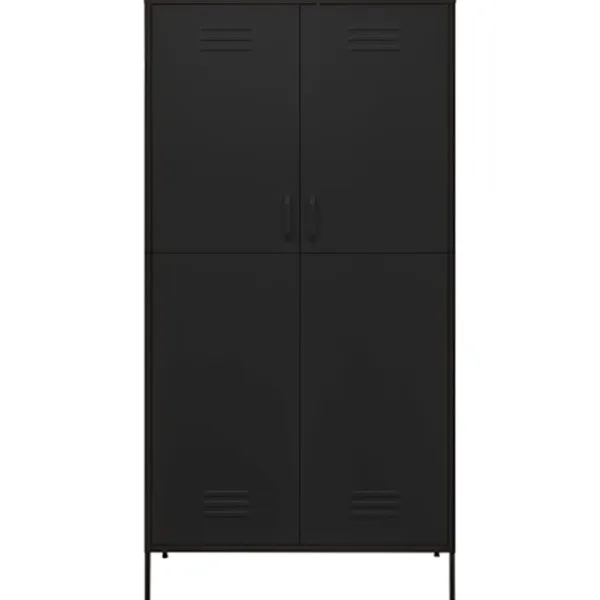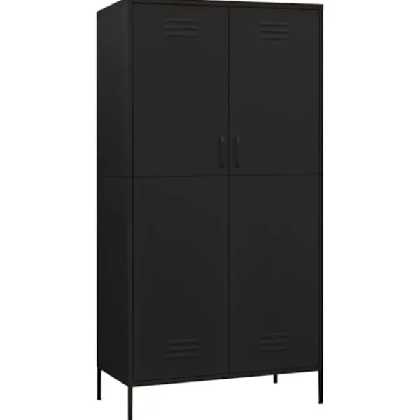Håll din inredning välorganiserad och snygg med den här garderoben. Den är en perfekt förvaringslösning och utstrålar en chic känsla till ditt befintliga hem. Det här klädskåpet är tillverkat av stål, vilket gör det hållbart och lätt att rengöra. Detta klädskåp har 4 justerbara hyllor och ett stort fack med en upphängningsstång, med gott om förvaringsutrymme både för dina längre outfits och andra vikta kläder eller tillbehör, som tröjor, jeans, hattar, handväskor etc.