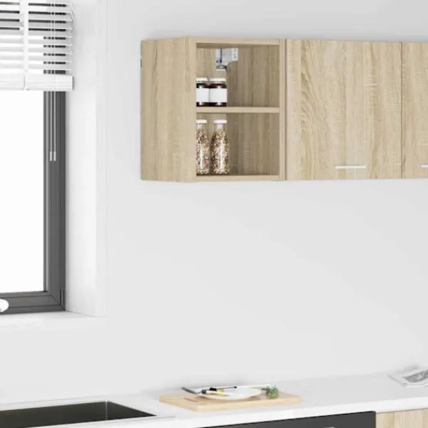 - Material: Gjort av konstruerat trä, detta moderna köksskåp är både funktionellt och hållbart. Träet är valt för dess styrka och motståndskraft mot dagligt slitage. Med en slät textur ger det en elegant känsla utan överflödig dekoration.