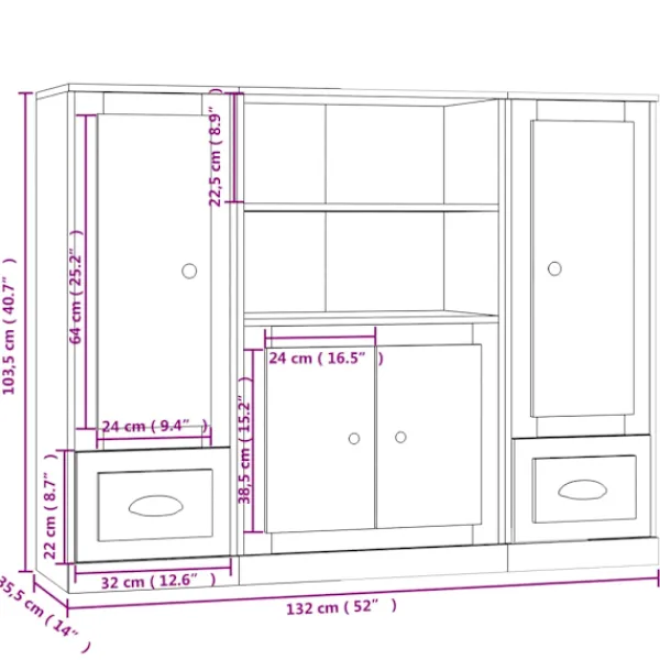 - Totala mått: 132 x 35,5 x 103,5 cm (L x B x H)