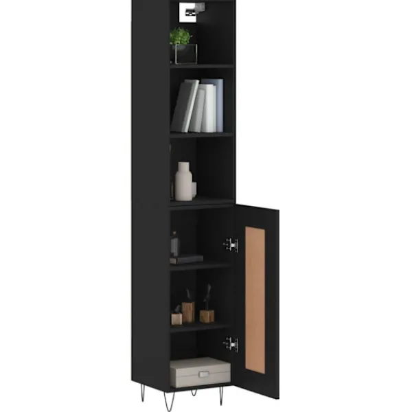 Letar du efter ett snyggt skåp till ditt hem? Detta högskåp ger din befintliga inredning en elegant charm! Hållbart material: Det konstruerade träet är av exceptionell kvalitet med slät yta och är också starkt, stabilt och fuktbeständigt.Gott om förvaring: Skåpet har gott om förvaringsutrymme för att hålla dina olika saker välorganiserade och inom räckhåll.Praktiska dörrar: Håll ordning i ditt hem genom att gömma småsaker bakom skåpets dörrar.Metallfötter: Metallfötterna ger din inredning ett lugn stil samtidigt som de säkerställer stabilitet. Varning:För att förhindra att den välter måste denna produkt användas tillsammans med det medföljande väggfästet. Bra att känna till:Skruvar och väggplugg ingår inte. Vi rekommenderar att du använder skruvar och plugg som passar dina väggar. Om du är osöker, sök professionell hjälp. Läs och följ varje steg i anvisningarna.