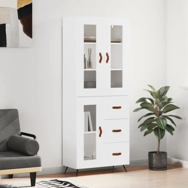 Letar du efter ett snyggt skåp till ditt hem? Detta högskåp ger din befintliga inredning en elegant charm! Hållbart material: Det konstruerade träet är av exceptionell kvalitet med slät yta och är också starkt, stabilt och fuktbeständigt.Gott om förvaring: Skåpet har gott om förvaringsutrymme för att hålla dina olika saker välorganiserade och inom räckhåll.Praktiska dörrar: Håll ordning i ditt hem genom att gömma småsaker bakom skåpets dörrar.Metallfötter: Metallfötterna ger din inredning ett lugn stil samtidigt som de säkerställer stabilitet. Varning:För att förhindra att den välter måste denna produkt användas tillsammans med det medföljande väggfästet. Bra att känna till:Skruvar och väggplugg ingår inte. Vi rekommenderar att du använder skruvar och plugg som passar dina väggar. Om du är osöker, sök professionell hjälp. Läs och följ varje steg i anvisningarna.
