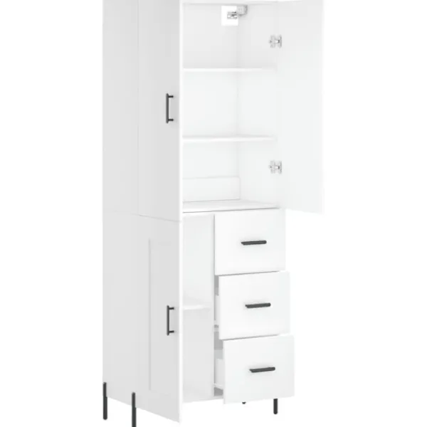 Letar du efter ett snyggt skåp till ditt hem? Detta högskåp ger din befintliga inredning en elegant charm! Hållbart material: Det konstruerade träet är av exceptionell kvalitet med slät yta och är också starkt, stabilt och fuktbeständigt.Gott om förvaring: Skåpet har gott om förvaringsutrymme för att hålla dina olika saker välorganiserade och inom räckhåll.Praktiska dörrar: Håll ordning i ditt hem genom att gömma småsaker bakom skåpets dörrar.Metallfötter: Metallfötterna ger din inredning ett lugn stil samtidigt som de säkerställer stabilitet. Varning:För att förhindra att den välter måste denna produkt användas tillsammans med det medföljande väggfästet. Bra att känna till:Skruvar och väggplugg ingår inte. Vi rekommenderar att du använder skruvar och plugg som passar dina väggar. Om du är osöker, sök professionell hjälp. Läs och följ varje steg i anvisningarna.