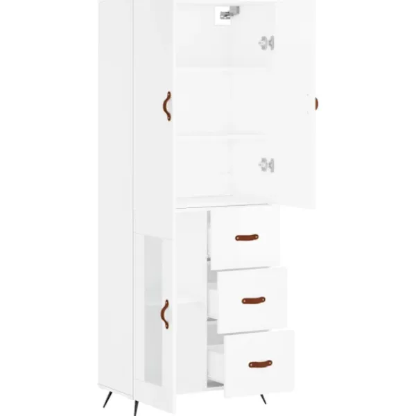 Letar du efter ett snyggt skåp till ditt hem? Detta högskåp ger din befintliga inredning en elegant charm! Hållbart material: Det konstruerade träet är av exceptionell kvalitet med slät yta och är också starkt, stabilt och fuktbeständigt.Gott om förvaring: Skåpet har gott om förvaringsutrymme för att hålla dina olika saker välorganiserade och inom räckhåll.Praktiska dörrar: Håll ordning i ditt hem genom att gömma småsaker bakom skåpets dörrar.Metallfötter: Metallfötterna ger din inredning ett lugn stil samtidigt som de säkerställer stabilitet. Varning:För att förhindra att den välter måste denna produkt användas tillsammans med det medföljande väggfästet. Bra att känna till:Skruvar och väggplugg ingår inte. Vi rekommenderar att du använder skruvar och plugg som passar dina väggar. Om du är osöker, sök professionell hjälp. Läs och följ varje steg i anvisningarna.