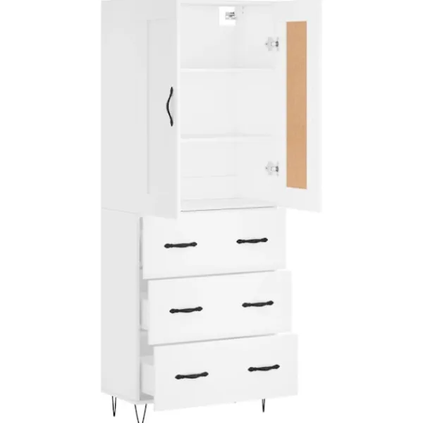 Letar du efter ett snyggt skåp till ditt hem? Detta högskåp ger din befintliga inredning en elegant charm! Hållbart material: Det konstruerade träet är av exceptionell kvalitet med slät yta och är också starkt, stabilt och fuktbeständigt.Gott om förvaring: Skåpet har gott om förvaringsutrymme för att hålla dina olika saker välorganiserade och inom räckhåll.Praktiska dörrar: Håll ordning i ditt hem genom att gömma småsaker bakom skåpets dörrar.Metallfötter: Metallfötterna ger din inredning ett lugn stil samtidigt som de säkerställer stabilitet. Varning:För att förhindra att den välter måste denna produkt användas tillsammans med det medföljande väggfästet. Bra att känna till:Skruvar och väggplugg ingår inte. Vi rekommenderar att du använder skruvar och plugg som passar dina väggar. Om du är osöker, sök professionell hjälp. Läs och följ varje steg i anvisningarna.
