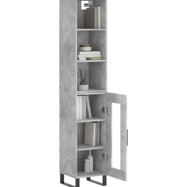 Letar du efter ett snyggt skåp till ditt hem? Detta högskåp ger din befintliga inredning en elegant charm! Hållbart material: Det konstruerade träet är av exceptionell kvalitet med slät yta och är också starkt, stabilt och fuktbeständigt.Gott om förvaring: Skåpet har gott om förvaringsutrymme för att hålla dina olika saker välorganiserade och inom räckhåll.Praktiska dörrar: Håll ordning i ditt hem genom att gömma småsaker bakom skåpets dörrar.Glasdesign: Glasdörren framhäver högskåpets elegans och låter dig visa dina prydnadssaker.Metallfötter: Metallfötterna ger din inredning ett lugn stil samtidigt som de säkerställer stabilitet. Varning:För att förhindra att den välter måste denna produkt användas tillsammans med det medföljande väggfästet. Bra att känna till:Skruvar och väggplugg ingår inte. Vi rekommenderar att du använder skruvar och plugg som passar dina väggar. Om du är osöker, sök professionell hjälp. Läs och följ varje steg i anvisningarna.