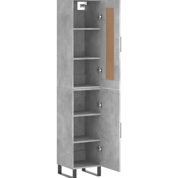 Letar du efter ett snyggt skåp till ditt hem? Detta högskåp ger din befintliga inredning en elegant charm! Hållbart material: Det konstruerade träet är av exceptionell kvalitet med slät yta och är också starkt, stabilt och fuktbeständigt. Skåpet är tillverkat av konstruerat trä och är robust och hållbart.Gott om förvaring: Skåpet har gott om förvaringsutrymme för att hålla dina olika saker välorganiserade och inom räckhåll.Praktiska dörrar: Håll ordning i ditt hem genom att gömma småsaker bakom skåpets dörrar.Metallfötter: Metallfötterna ger din inredning ett lugn stil samtidigt som de säkerställer stabilitet. Varning:För att förhindra att den välter måste denna produkt användas tillsammans med det medföljande väggfästet. Bra att känna till:Skruvar och väggplugg ingår inte. Vi rekommenderar att du använder skruvar och plugg som passar dina väggar. Om du är osöker, sök professionell hjälp. Läs och följ varje steg i anvisningarna.