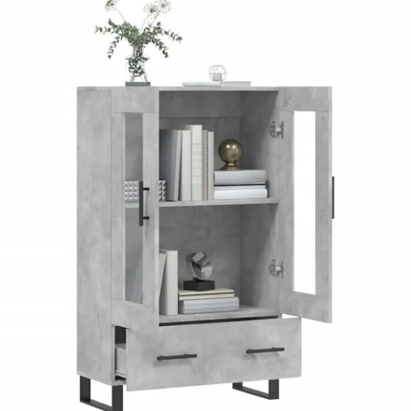 Letar du efter ett snyggt skåp till ditt hem? Detta högskåp ger din befintliga inredning en modern charm! Hållbart material: Det konstruerade träet är av exceptionell kvalitet med slät yta och är också starkt, stabilt och fuktbeständigt. Metallben: Metallbenen utstrålar en modern och lugn charm i din inredning samtidigt som du garanteras stabilitet. Gott om förvaring: Skåpet har gott om förvaringsutrymme för att hålla dina olika saker välorganiserade och inom räckhåll. Robust toppskiva: Toppskivan är perfekt för att visa upp dekorationer, foton och krukväxter. Praktisk design: Dina tillhörigheter är synliga bakom glasdörren, samtidigt som de skyddas från damm. Dessutom har skåpet handtag som gör det enkelt att öppna dörrarna. Varning:För att förhindra att den välter måste denna produkt användas tillsammans med det medföljande väggfästet.
