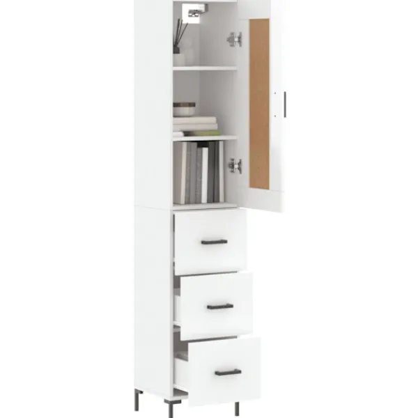 Letar du efter ett snyggt skåp till ditt hem? Detta högskåp ger din befintliga inredning en elegant charm! Hållbart material: Det konstruerade träet är av exceptionell kvalitet med slät yta och är också starkt, stabilt och fuktbeständigt. Skåpet är tillverkat av konstruerat trä och är robust och hållbart.Gott om förvaring: Skåpet har gott om förvaringsutrymme för att hålla dina olika saker välorganiserade och inom räckhåll.Praktisk dörr: Håll ordning i ditt hem genom att gömma småsaker i detta högskåp.Metallfötter: Metallfötterna ger din inredning ett lugn stil samtidigt som de säkerställer stabilitet. Varning:För att förhindra att den välter måste denna produkt användas tillsammans med det medföljande väggfästet. Bra att känna till:Skruvar och väggplugg ingår inte. Vi rekommenderar att du använder skruvar och plugg som passar dina väggar. Om du är osöker, sök professionell hjälp. Läs och följ varje steg i anvisningarna.