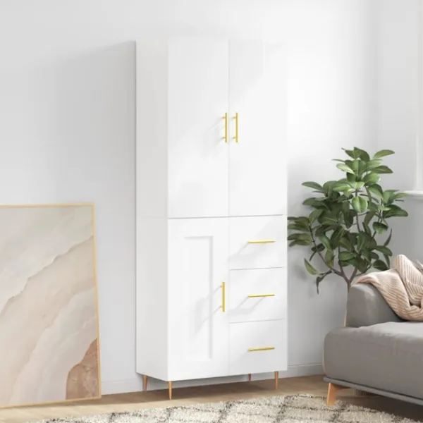 Letar du efter ett snyggt skåp till ditt hem? Detta högskåp ger din befintliga inredning en elegant charm! Hållbart material: Det konstruerade träet är av exceptionell kvalitet med slät yta och är också starkt, stabilt och fuktbeständigt.Gott om förvaring: Skåpet har gott om förvaringsutrymme för att hålla dina olika saker välorganiserade och inom räckhåll.Praktiska dörrar: Håll ordning i ditt hem genom att gömma småsaker bakom skåpets dörrar.Metallfötter: Metallfötterna ger din inredning ett lugn stil samtidigt som de säkerställer stabilitet. Varning:För att förhindra att den välter måste denna produkt användas tillsammans med det medföljande väggfästet. Bra att känna till:Skruvar och väggplugg ingår inte. Vi rekommenderar att du använder skruvar och plugg som passar dina väggar. Om du är osöker, sök professionell hjälp. Läs och följ varje steg i anvisningarna.