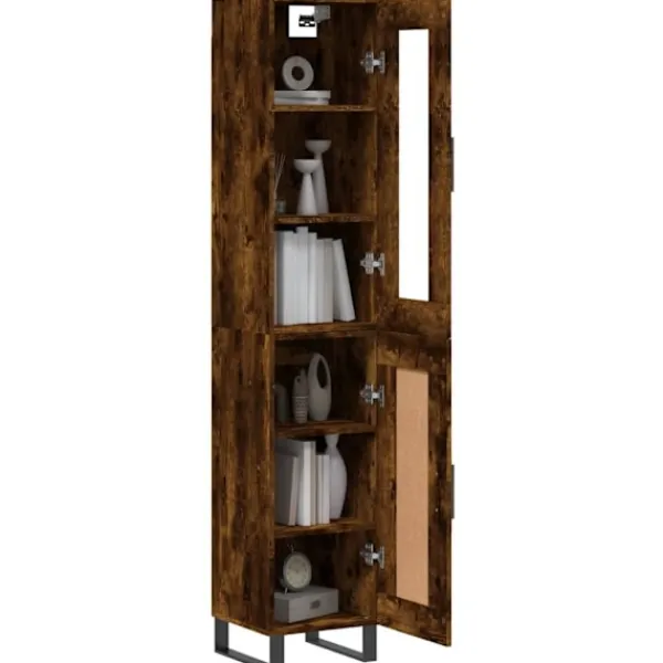 Letar du efter ett snyggt skåp till ditt hem? Detta högskåp ger din befintliga inredning en elegant charm! Hållbart material: Det konstruerade träet är av exceptionell kvalitet med slät yta och är också starkt, stabilt och fuktbeständigt.Gott om förvaring: Skåpet har gott om förvaringsutrymme för att hålla dina olika saker välorganiserade och inom räckhåll.Praktiska dörrar: Håll ordning i ditt hem genom att gömma småsaker bakom skåpets dörrar.Järnben: Järnbenen utstrålar en industriell charm i din inredning samtidigt som de är stabila. Varning:För att förhindra att den välter måste denna produkt användas tillsammans med det medföljande väggfästet. Bra att känna till:Skruvar och väggplugg ingår inte. Vi rekommenderar att du använder skruvar och plugg som passar dina väggar. Om du är osöker, sök professionell hjälp. Läs och följ varje steg i anvisningarna.