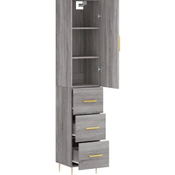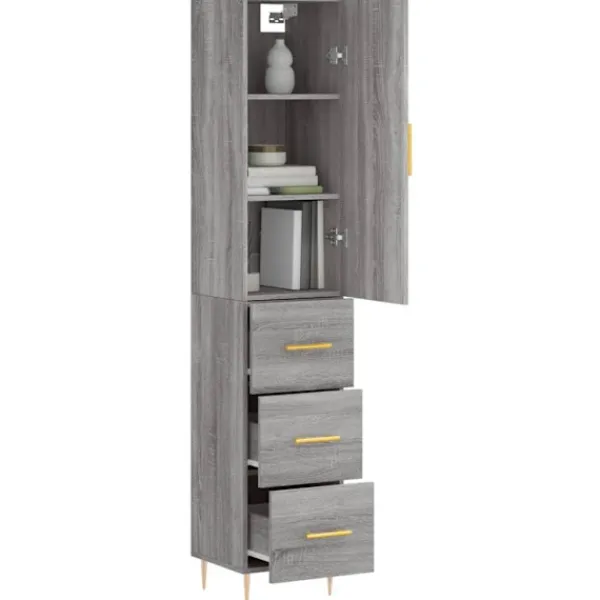 Letar du efter ett snyggt skåp till ditt hem? Detta högskåp ger din befintliga inredning en elegant charm! Hållbart material: Det konstruerade träet är av exceptionell kvalitet med slät yta och är också starkt, stabilt och fuktbeständigt.Gott om förvaring: Skåpet har gott om förvaringsutrymme för att hålla dina olika saker välorganiserade och inom räckhåll.Praktiska dörrar: Håll ordning i ditt hem genom att gömma småsaker bakom skåpets dörr.Metallfötter: Metallfötterna ger din inredning ett lugn stil samtidigt som de säkerställer stabilitet. Varning:För att förhindra att den välter måste denna produkt användas tillsammans med det medföljande väggfästet. Bra att känna till:Skruvar och väggplugg ingår inte. Vi rekommenderar att du använder skruvar och plugg som passar dina väggar. Om du är osöker, sök professionell hjälp. Läs och följ varje steg i anvisningarna.