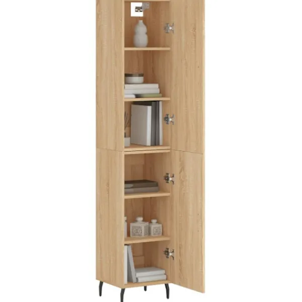 Letar du efter ett snyggt skåp till ditt hem? Detta högskåp ger din befintliga inredning en elegant charm! Hållbart material: Det konstruerade träet är av exceptionell kvalitet med slät yta och är också starkt, stabilt och fuktbeständigt.Gott om förvaring: Skåpet har gott om förvaringsutrymme för att hålla dina olika saker välorganiserade och inom räckhåll.Praktiska dörrar: Håll ordning i ditt hem genom att gömma småsaker bakom skåpets dörrar.Metallfötter: Metallfötterna ger din inredning ett lugn stil samtidigt som de säkerställer stabilitet. Varning:För att förhindra att den välter måste denna produkt användas tillsammans med det medföljande väggfästet. Bra att känna till:Skruvar och väggplugg ingår inte. Vi rekommenderar att du använder skruvar och plugg som passar dina väggar. Om du är osöker, sök professionell hjälp. Läs och följ varje steg i anvisningarna.