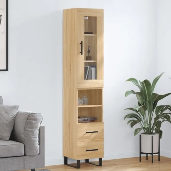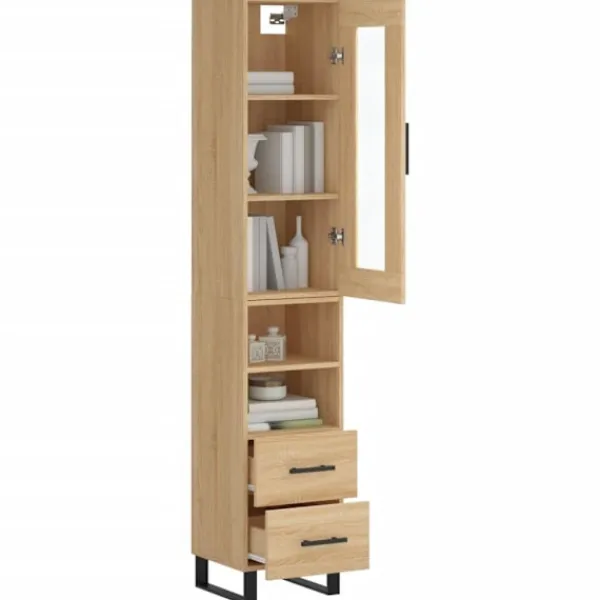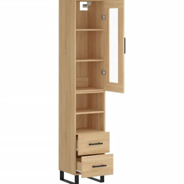 Letar du efter ett snyggt skåp till ditt hem? Detta högskåp ger din befintliga inredning en elegant charm! Hållbart material: Det konstruerade träet är av exceptionell kvalitet med slät yta och är också starkt, stabilt och fuktbeständigt.Gott om förvaring: Skåpet har gott om förvaringsutrymme för att hålla dina olika saker välorganiserade och inom räckhåll.Praktiska dörrar: Håll ordning i ditt hem genom att gömma småsaker bakom skåpets dörr.Metallfötter: Metallfötterna ger din inredning ett lugn stil samtidigt som de säkerställer stabilitet. Varning:För att förhindra att den välter måste denna produkt användas tillsammans med det medföljande väggfästet. Bra att känna till:Skruvar och väggplugg ingår inte. Vi rekommenderar att du använder skruvar och plugg som passar dina väggar. Om du är osöker, sök professionell hjälp. Läs och följ varje steg i anvisningarna.