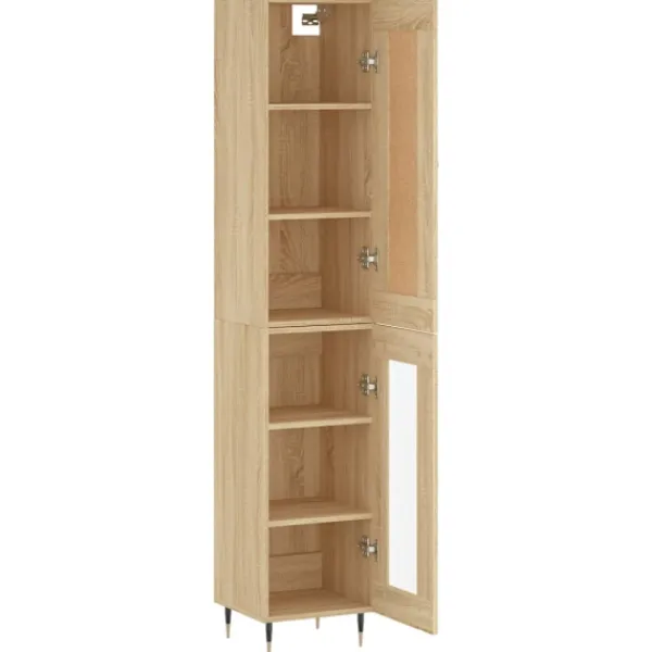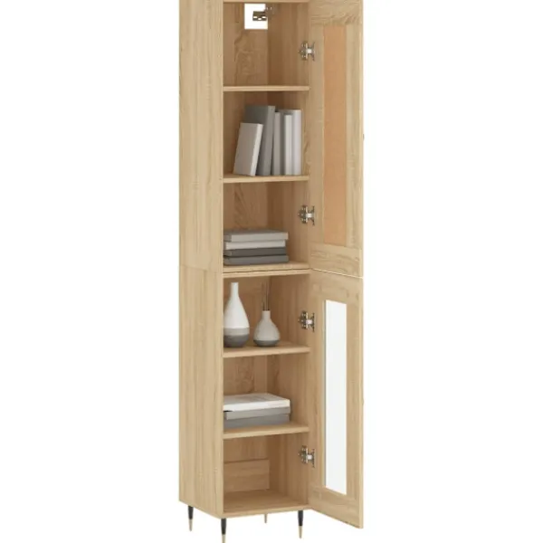 Letar du efter ett snyggt skåp till ditt hem? Detta högskåp ger din befintliga inredning en elegant charm! Hållbart material: Det konstruerade träet är av exceptionell kvalitet med slät yta och är också starkt, stabilt och fuktbeständigt.Gott om förvaring: Skåpet har gott om förvaringsutrymme för att hålla dina olika saker välorganiserade och inom räckhåll.Praktiska dörrar: Håll ordning i ditt hem genom att gömma småsaker bakom skåpets dörrar.Metallfötter: Metallfötterna ger din inredning ett lugn stil samtidigt som de säkerställer stabilitet. Varning:För att förhindra att den välter måste denna produkt användas tillsammans med det medföljande väggfästet. Bra att känna till:Skruvar och väggplugg ingår inte. Vi rekommenderar att du använder skruvar och plugg som passar dina väggar. Om du är osöker, sök professionell hjälp. Läs och följ varje steg i anvisningarna.
