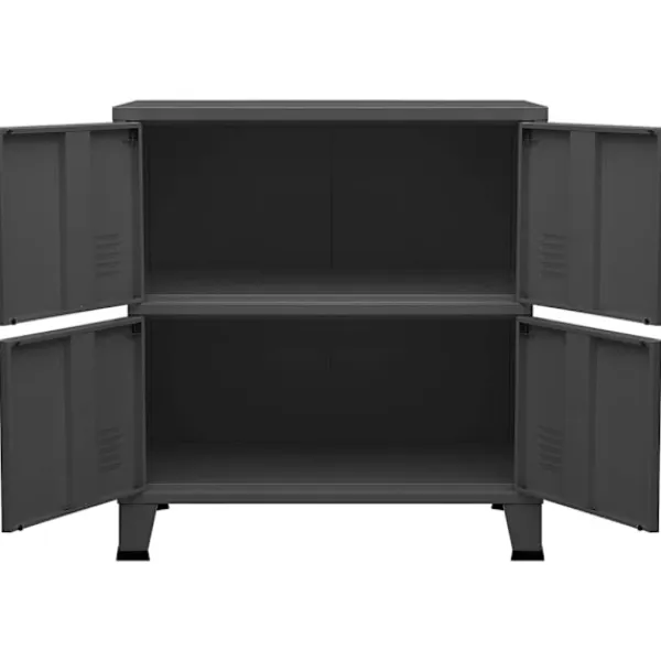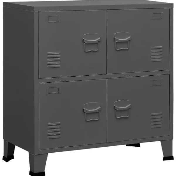 Detta industriella förvaringsskåp kommer att hålla ditt hem rent och organiserat! Det har en hylla och namnskyltar på dörrarna, där du kan sortera dina dokument snyggt i olika kategorier. Den passar alla kontorsinredningar tack vare sin ikoniska design och industriella charm. Stålfötterna med plastöverdrag förhindrar att dina golv repas. Detta skåp är tillverkat i stål, vilket gör det hållbart och enkelt att rengöra. Varje dörr är utrustad med en namnskyltshållare och luftventiler, som gör att du snyggt kan sortera dina föremål och understryka dess industriella utseende.