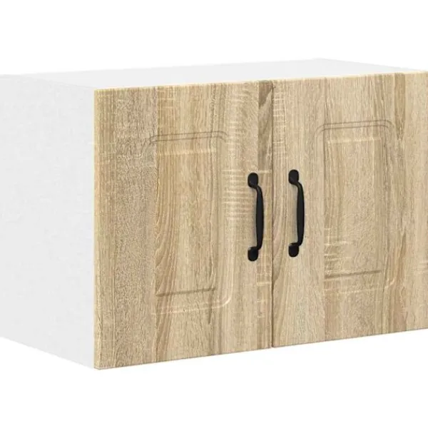 Det här träköksskåpet ger ditt kök ett lyft med sin moderna och stiliga design. Det är skapat för att ge både funktion och stil, och passar perfekt in i dagens kök. Den rektangulära formen och konstruktionen i konstruerat trä ger en unik känsla, och det stora förvaringsutrymmet gör det till en smart lösning för att organisera allt du behöver i köket. Med sina rena linjer och minimalistiska stil passar det bra med olika köksinredningar och ger en touch av elegans till din matlagningsyta.