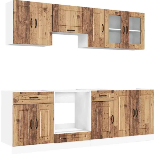 Denna 8-delade köksskåpsuppsättning, med sin eleganta design, optimerar ditt köksutrymme och ger gott om förvaringsutrymme för dina personliga tillhörigheter!
