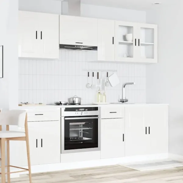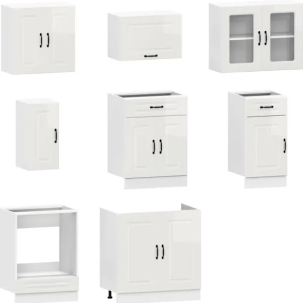Denna 8-delade köksskåpsuppsättning, med sin eleganta design, optimerar ditt köksutrymme och ger gott om förvaringsutrymme för dina personliga tillhörigheter!