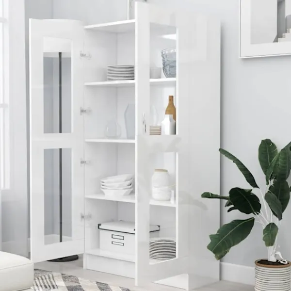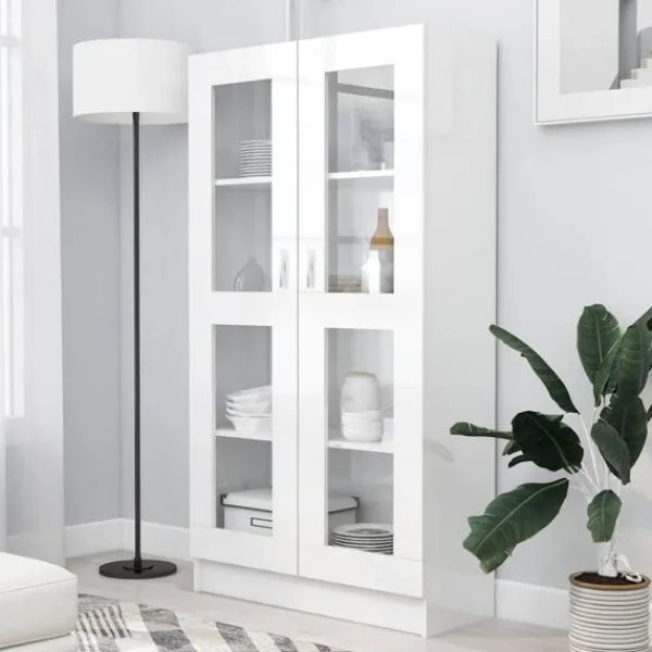 Vitrinskåpet har en elegant och klassisk design, det blir ett dekorativt och praktiskt tillskott i din inredning. Skåpet är tillverkat av konstruerat trä, vilket säkerställer dess robusthet och hållbarhet. Bokhyllan är designad med 4 rymliga fack och 2 dörrar med gott om lagringsutrymme för att hålla dina tidningar, böcker, DVD-skivor, multimediaenheter och andra dekorativa föremål välorganiserade och inom räckhåll. Mångsidig användning: Bokhyllan är också en perfekt förvaringslösning i vilket rum som helst. Dessutom är bokhyllan enkel att rengöra med en fuktig trasa.