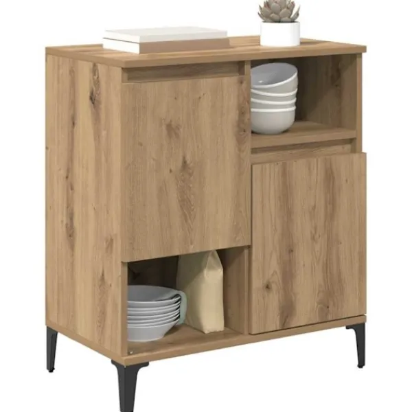 Det här sidobordet i konstruerat trä är mångsidigt och perfekt för både vardagsrum och matsalar. Dess minimalistiska design och rena linjer ger en modern känsla. Med sin rektangulära form gör den ett stort intryck och passar bra i olika rum. Den stiliga designen kompletterar alla moderna hem och är både elegant och praktisk. Tänk dig hur detta bord kan få din matsal att sticka ut genom att förvara din fina porslin, dukar och serveringsprylar, samtidigt som det bidrar med en touch av stil till din inredning.