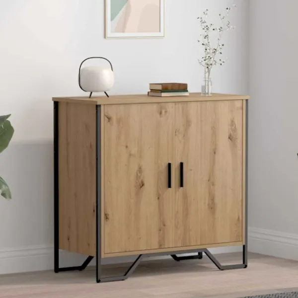 - Byggt av konstruerat trä Detta sidobord är gjort av starkt konstruerat trä som ger ett pålitligt förvaringsalternativ. Det är stabilt och tåligt, designat för att klara av daglig användning och är en långsiktig investering för ditt hem.