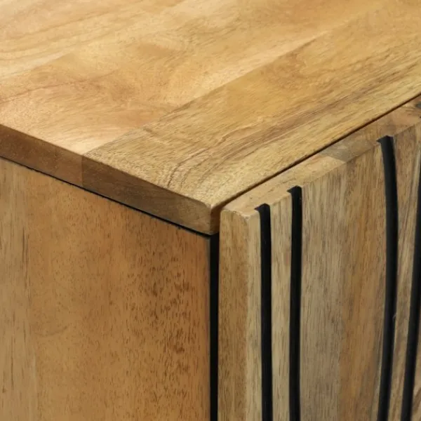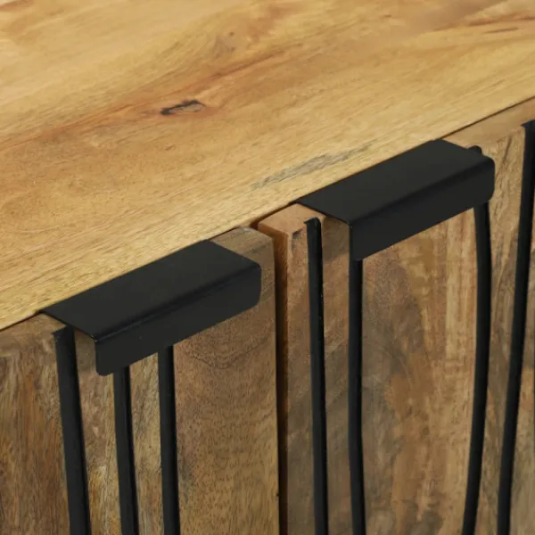 - Materialkomposition: Den här sideboarden är gjord av massivt mangoträd, vilket ger en härlig naturlig värme och ser samtidigt till att den håller länge. Den innehåller också konstruerat trä för extra stabilitet, och varje bit ser unik ut med sina texturer och färger.