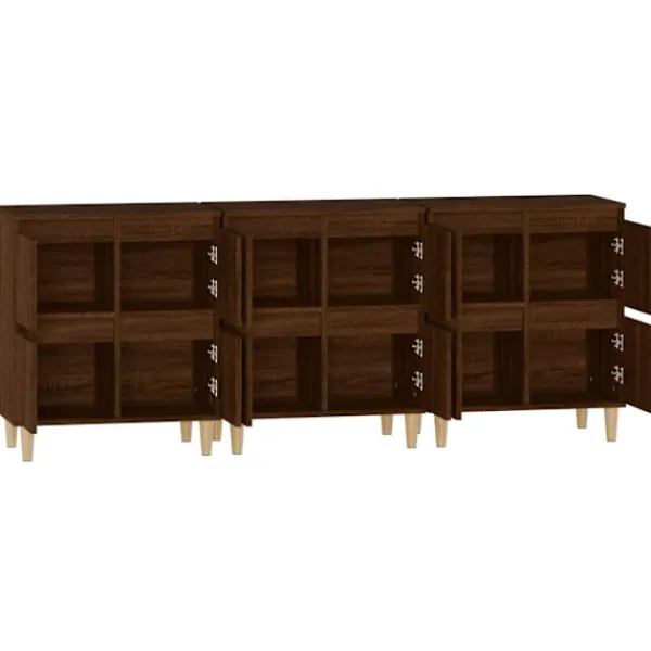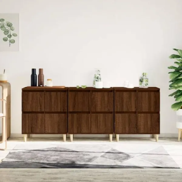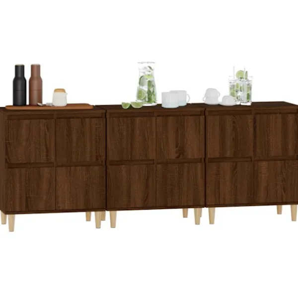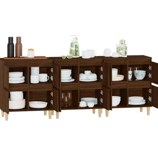 Dessa klassiska skänkar med ett tidlöst utseende kan bli ett perfekt tillägg i din heminredning. Hållbart material: Det konstruerade träet är av exceptionell kvalitet med slät yta och är också starkt, stabilt och fuktbeständigt. Skåpet är tillverkad av konstruerat trä och är lätt att rengöra med en fuktig trasa.Gott om förvaringsutrymme: Skåpet är utrustat med 4 utrymmen, vilket ger gott om förvaringsutrymme för att hålla dina olika dagliga saker välorganiserade och inom räckhåll.Visningsfunktion: Översidan av denna byrå är utmärkt för att placera dina dekorativa föremål, fotoalbum eller små växter på. Varning:För att förhindra att den välter måste denna produkt användas tillsammans med det medföljande väggfästet.