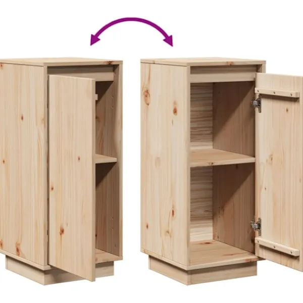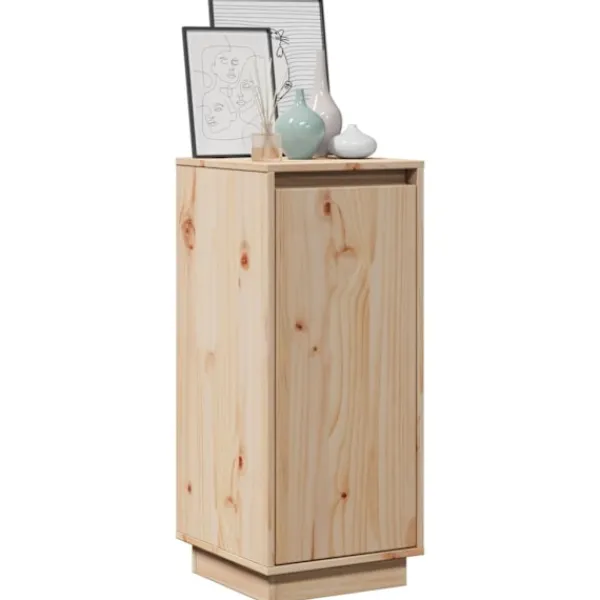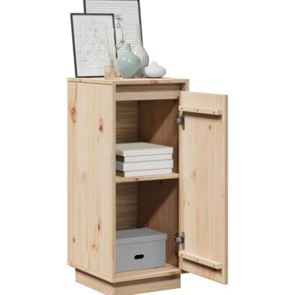 Denna skänk ger en känsla av elegans och ett elegant utseende i ditt vardagsrum. Detta sidoskåp är tillverkat av massiv furu som säkerställer dess hållbarhet och stabilitet. Skåpet har gott om förvaringsutrymme för böcker, multimediaapparater och andra föremål. Den stadiga bordsytan är perfekt för dekorativa objekt såsom inramade foton, krukväxter eller en vas.
