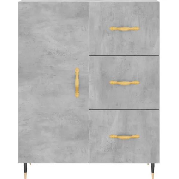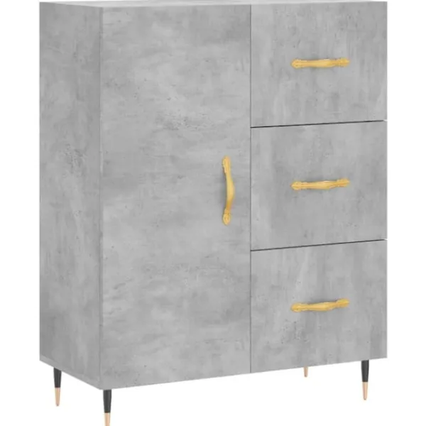 Detta klassiska skåp har en tidlös look, vilket gör det till ett perfekt komplement till ditt hem. Robust material: Det konstruerade träet är av exceptionell kvalitet med slät yta och är också starkt, stabilt och fuktbeständigt.Gott om förvaring: Byrån har 3 lådor och 2 fack bakom dörren, med gott om förvaringsutrymme för att hålla dina olika saker välorganiserade och inom räckhåll.Visningsfunktion: Den robusta ovansidan är perfekt för att visa dekorativa föremål, fotoramar eller krukväxter på.Praktisk dörr: Håll dina väsentligheter dammfria genom att bevara dem i detta förvaringsskåp.Metallfötter: Metallfötterna ger din inredning ett lugn stil samtidigt som de säkerställer stabilitet. Varning:För att förhindra att den välter måste denna produkt användas tillsammans med det medföljande väggfästet.