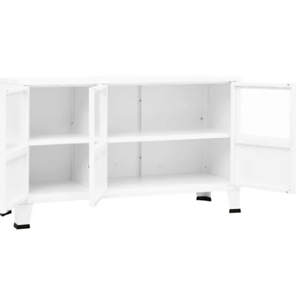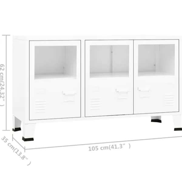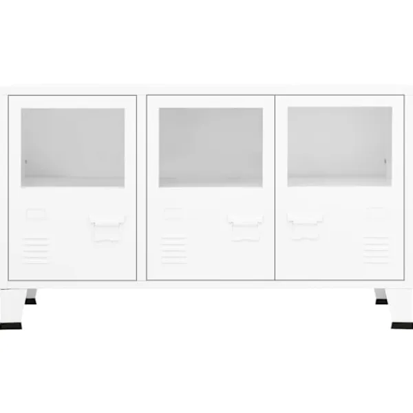 Denna industriella skänk med en enkel men praktisk design blir garanterat ett blickfång i ditt hem. Detta förvaringsskåp är tillverkat av metall och har en robust och hållbar konstruktion som garanterar många års användning. Skåpet har fack i glasdörren med gott om förvaringsutrymme för att förvara och visa upp dina böcker, tidskrifter, DVD-skivor, vaser och andra dekorativa föremål välorganiserat och inom räckhåll. Varje dörr är utrustad med en namnskyltshållare och luftventiler, som gör att du snyggt kan sortera dina föremål och understryka dess industriella utseende. Dessutom är den enkel att rengöra med en fuktig trasa.