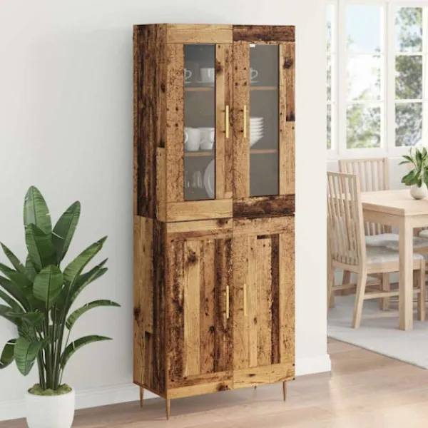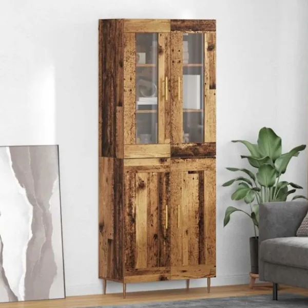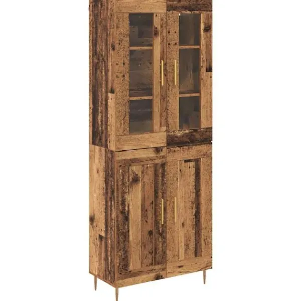 - Material: Tillverkat av konstruerat trä, har detta högskåp en stabil och hållbar bas. Det extra glaset ger en stilren känsla, vilket gör den visuellt tilltalande och ger lätt tillgång till innehållet. Dessa material samarbetar för att skapa en stark men vacker produkt som är pålitlig för alla dina förvaringsbehov.