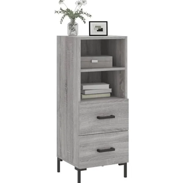 Denna moderna skänk med ett tidlöst utseende kan bli ett perfekt tillägg till din heminredning. Hållbart material: Det konstruerade träet är av exceptionell kvalitet med slät yta och är också starkt, stabilt och fuktbeständigt. Metallben: Metallbenen utstrålar en modern och lugn charm i din inredning samtidigt som du garanteras stabilitet. Gott om förvaringsutrymme: Skåpet har 2 lådor och 2 utrymmen för att hålla saker organiserade och inom räckhåll. Robust toppskiva: Toppskivan är perfekt för att visa upp dekorationer, foton och krukväxter. Varning:För att förhindra att den välter måste denna produkt användas tillsammans med det medföljande väggfästet.