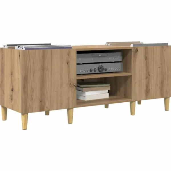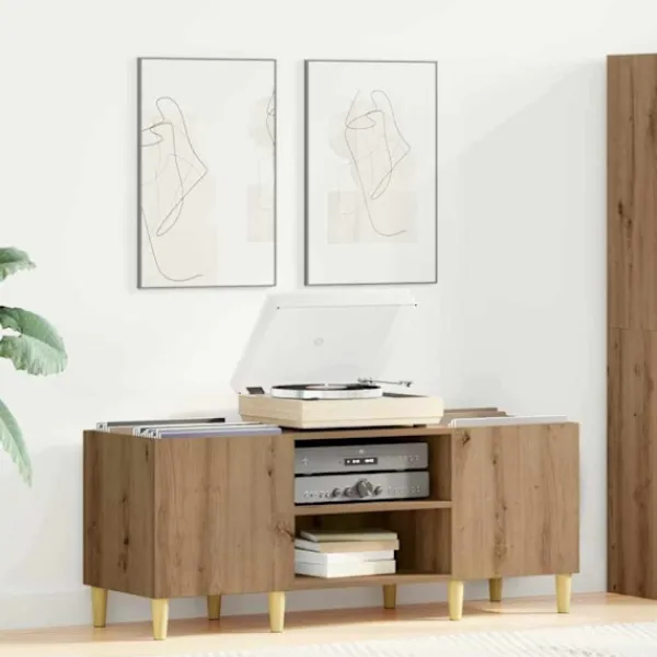 - Material av konstruerat trä: Skivskåpet är gjort av slitstarkt trä som klarar vikten av många vinylskivor och ger en snygg finish.