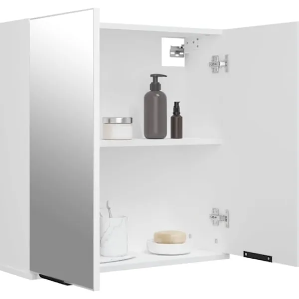 Det stilrena spegelskåpet har plats för alla dina förvaringsbehov, med ett modernt utseende i ett urval av färger. Stabilt material: Det konstruerade träet är av exceptionell kvalitet med slät yta och är också starkt, stabilt och fuktbeständigt.Ytterligare förvaringsutrymme: Denna badrumsmöbel har gott om förvaring bakom två spegeldörrar för att hålla badrumsmaterial för hela familjen.Snygg design: De rena linjerna och den eleganta designen gör att detta skåp smälter in i ditt badrum. Observera:Skruv(ar) och plugg(ar) för insidan av väggen ingår ej. Sök och använd skruv(ar) och plugg(ar) som passar dina väggar. Om du är osäker, sök professionell rådgivning. Läs och följ varje steg i instruktionerna noggrant.Varje produkt levereras med en monteringsmanual i lådan för enkel montering.