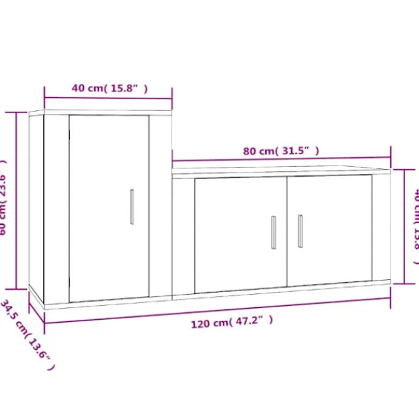 - 1 x TV-skåp: 80 x 34,5 x 40 cm (L x B x H)