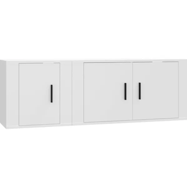 Dessa klassiska tv-möbler blir ett blickfång i ditt rum med sin trendiga men praktiska design. Robust material: Det konstruerade träet är av exceptionell kvalitet med slät yta och är också starkt, stabilt och fuktbeständigt. Tv-bänken är tillverkad av konstruerat trä och är lätt att rengöra.Gott om lagringsutrymme: Tv-möblerna har gott om lagringsutrymme för dina tidningar, DVD-skivor och andra föremål välorganiserade.Väggmonterad design: Dessa medieskåp tar ingen golvyta. Du kan enkelt hänga dem på väggen.Praktiska dörrar: Håll dina väsentligheter fria från damm genom att gömma dem i denna medieenhet. Bra att känna till:För att göra monteringen så enkel som möjligt, levereras varje produkt med en bruksanvisning.Skruvar och väggplugg ingår inte. Vi rekommenderar att du använder skruvar och plugg som passar dina väggar. Om du är osöker, sök professionell hjälp. Läs och följ varje steg i anvisningarna.