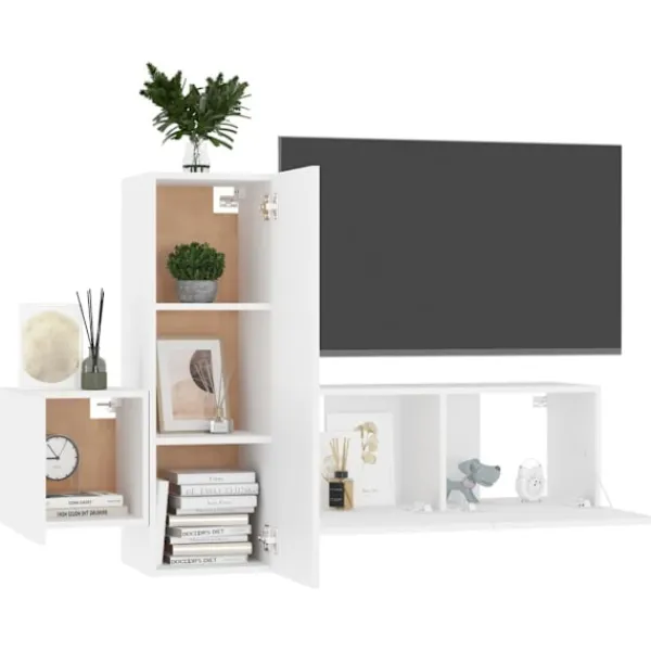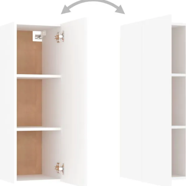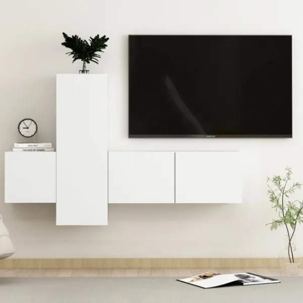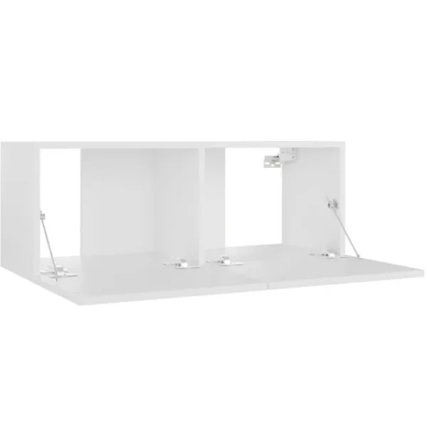 Denna uppsättning stadiga tv-skåp blir en mittpunkt i ditt vardagsrum med sin trendiga men ändå praktiska design. TV-skåpen skall fästas på väggen, vilket gör de till ett tidlöst tillskott till ditt hem. De har gott om förvaringsfack vilket gör de till en idealisk plats för förvaring av alla dina böcker, tidskrifter, DVD -skivor eller andra föremål. Skåpen är lätta att underhålla och rengöra med en fuktig trasa.