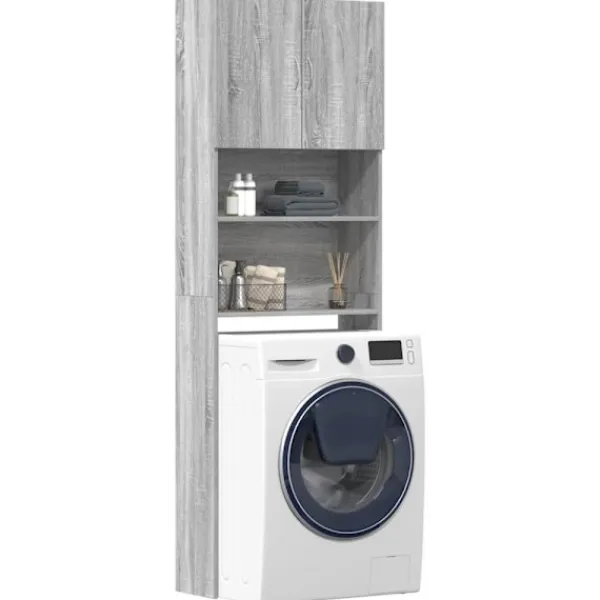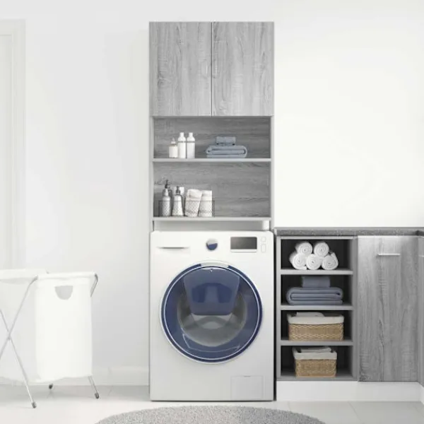- Platsbesparande design: Badrumsskåpet är utformat för att placeras ovanför tvättmaskinen, passar bra i små utrymmen och gör det perfekt för små badrum och tvättstugor.