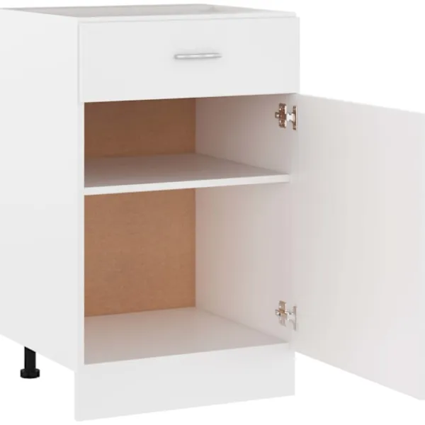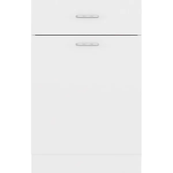 Detta underskåp, med sin enkla design, optimerar ditt köksutrymme och har om förvaringsutrymme för dina personliga tillhörigheter! Förvaringsskåpet är hållbart och funktionellt och håller ditt kök mer organiserat. Skåpet har en låda och två hyllor för förvaring av skålar, tallrikar, kastruller och annan köksutrustning. Det finns en dörr framför hyllorna för att hålla sakerna inuti rena. Dessutom är skåpet lätt att rengöra med en fuktig trasa. Vänligen observera att köksbänken inte ingår i leveransen.