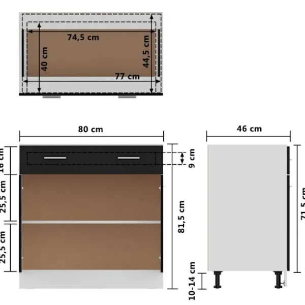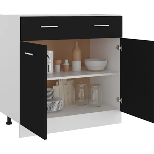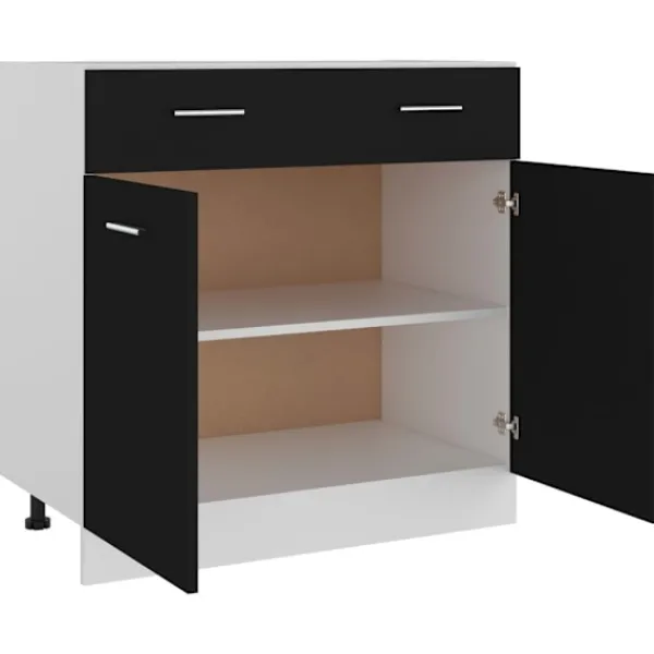 Detta underskåp, med sin enkla design, optimerar ditt köksutrymme och har om förvaringsutrymme för dina personliga tillhörigheter! Förvaringsskåpet är hållbart och funktionellt och håller ditt kök mer organiserat. Skåpet har en låda och två hyllor för förvaring av skålar, tallrikar, kastruller och annan köksutrustning. Det finns två dörrar utanför hyllorna för att hålla innehållet rent. Dessutom är det här skåpet lätt att rengöra med en fuktig trasa. Vänligen observera att köksbänken inte ingår i leveransen.