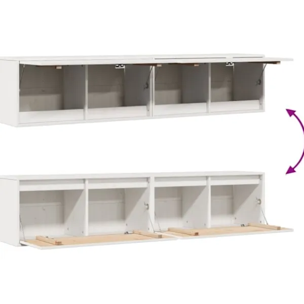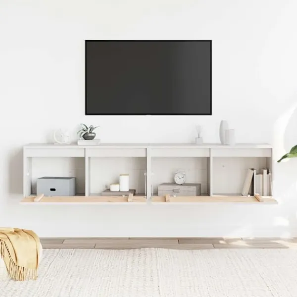 Dessa väggskåp blir en dekorativ och praktisk förlängning av din inredning. Du kan också använda de som TV-skåp Väggskåpet är tillverkat av massivt furuträ, vilket garanterar robusthet, hållbarhet och långvarig service. Väggenheten fungerar som den perfekta platsen att placera föremål som böcker, samlarobjekt, ornament och mer. Skåpet förvandlar en tom vägg till en designfunktion. Dessutom är det flytande skåpet lätt att rengöra med en fuktig trasa. Obs: Skruvar och plugg för insidan av väggen ingår ej. Sök och använd skruvar och plugg som är lämpliga för dina väggar. Om du är osäker, sök professionell rådgivning. Läs och följ varje steg i instruktionen noggrant.